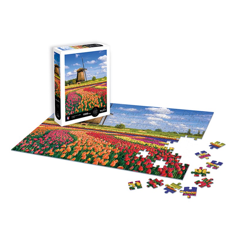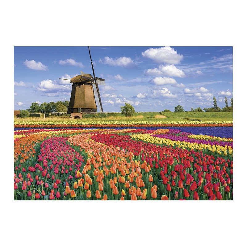 Ce puzzle représentant un "Champs de tulipes" en Hollande est composé de 1000 pièces toutes différentes avec un toucher "soft-touch".