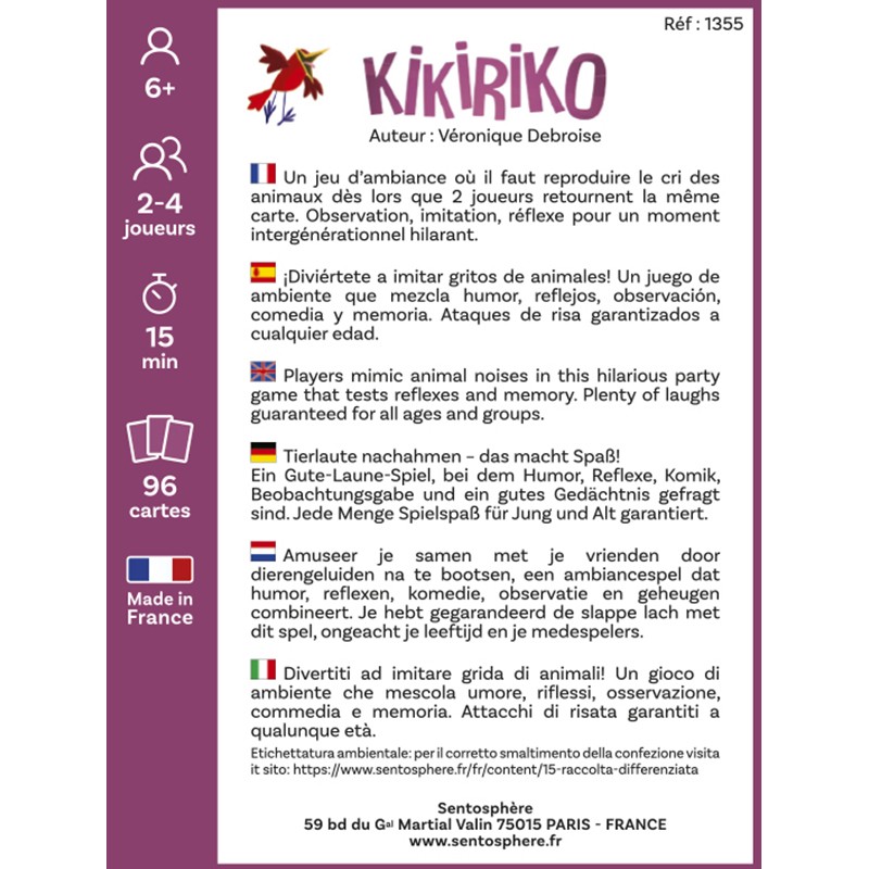 A game that will make both kids and adults laugh by mimicking animal sounds when matching cards appear. With multiple difficulty levels depending on age, it’s a fun party game that helps develop reflexes.