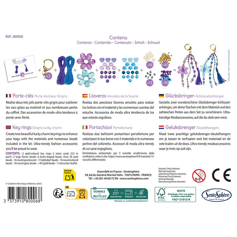 This kit contains everything you need to make two beautiful keychains. As true fashion accessories, they’ll add a trendy touch to your outfit when attached to your backpack or purse